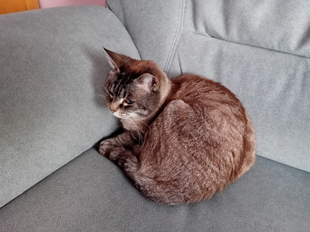 Diese tolle Katzendame wurde abgegeben, weil der Besitzer verzweifelt war. Loona hatte sich angeeignet, immer wilder, mit ihrem Schwanz zu spielen, was so eskalierte, dass sie sich den Schwanz blutig biss. Jegliche Versuche beim Tierarzt, den Schwanz zu behandeln und verbinden, scheiterten, und so wurde uns Loona verzweifelt gebracht, weil der Besitzer die Blutung auf Dauer nicht stoppen konnte. Wir haben zunächst konservativ versucht, Loona zu behandeln und uns ihr Verhalten angeschaut. Es war schwer zu deuten, ob die neun Jahre alte Loona das tat, weil sie eine „Macke“ hatte oder sie sogar wegen Schmerzen zubiss. Schmerzen (zum Beispiel Rückenschmerzen) führen nicht selten dazu, dass sich Katzen in den Schwanz oder andere Bereiche beißen können. Nachdem auch bei uns die Behandlung nicht anschlug und sich der Schwanz entzündete, musste ein Teil amputiert werden. Sie hat das toll überstanden und wir setzten sie danach auf Antidepressiva – ja, das gibt es auch bei Katzen!